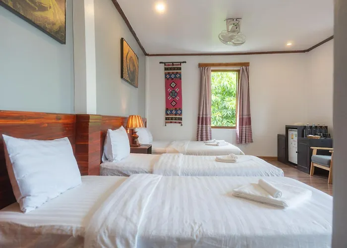 Cet hôtel 3 étoiles est entouré des jardins et des jardins tropicaux. Les édifices religieux notables à proximité incluent le Temple bouddhiste Wat Manorom, à une distance de 2 km de Thongbay Guesthouse.